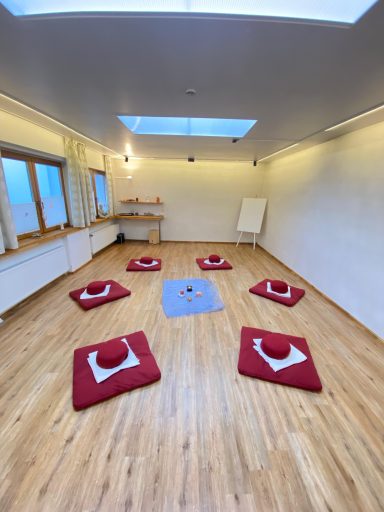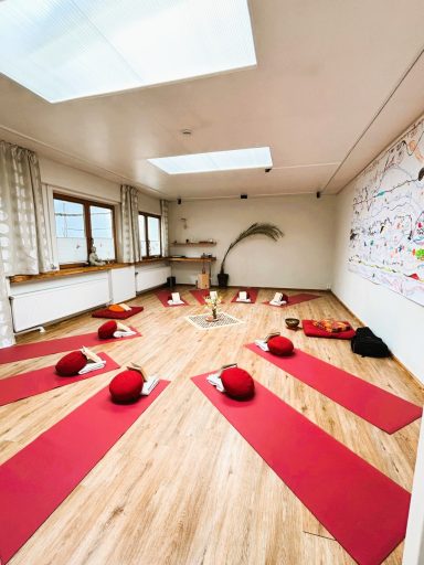 Wenn gewünscht, kann das vorhandene Material wie Yogamatten, Pilates-Rollen, Sitzkissen, Meditationskissen, Stühle und Decken genutzt werden. Weiterhin ist eine Soundanlage verbaut.